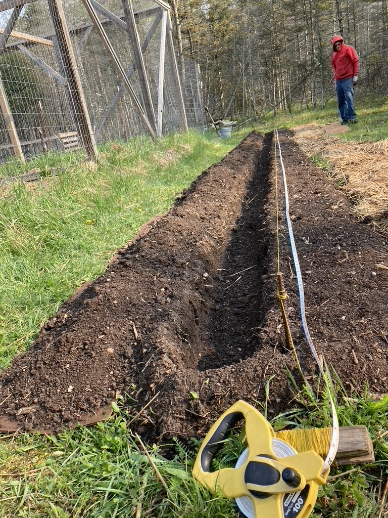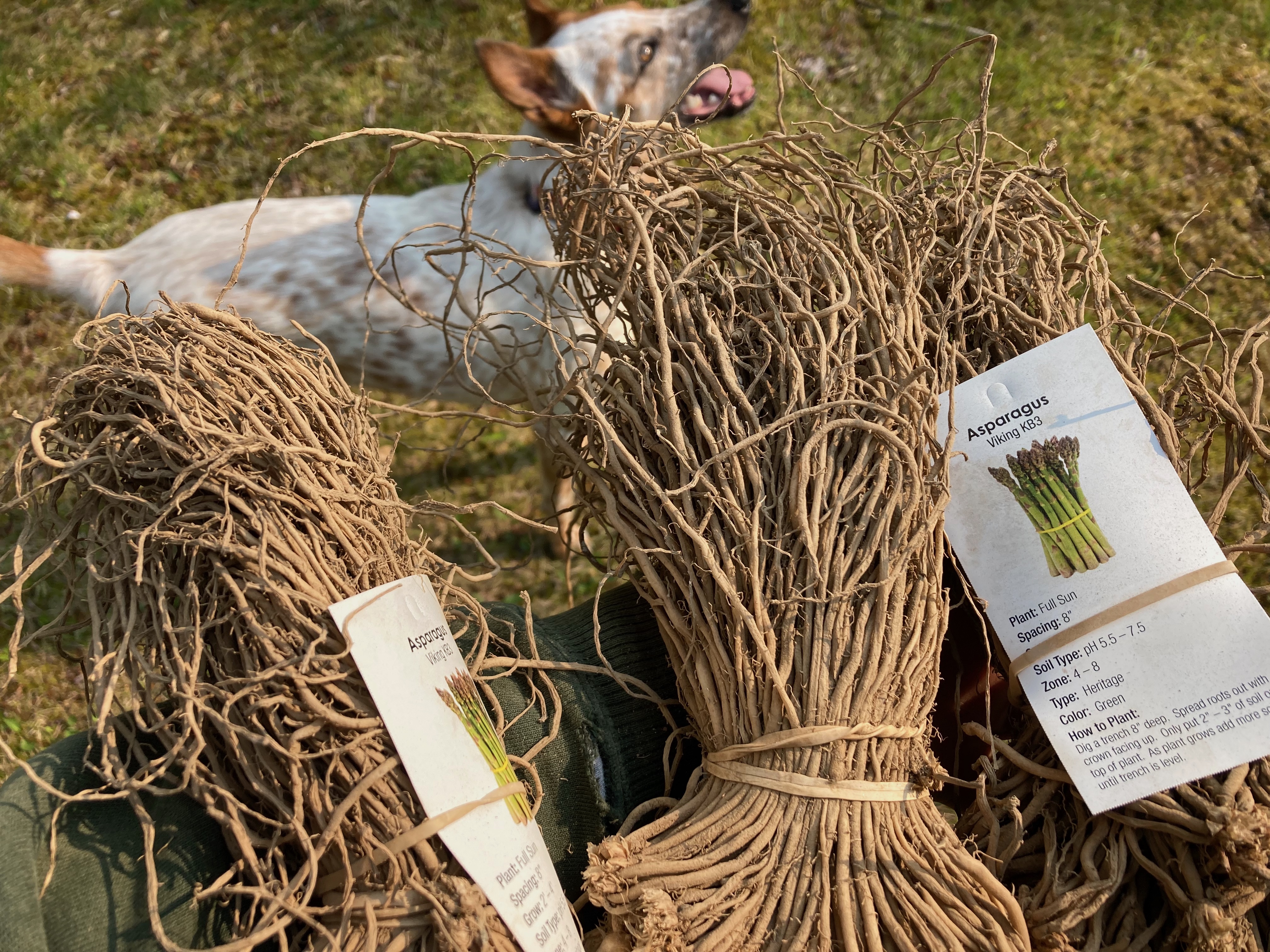 I’ve had plenty of practice being disappointed by asparagus. We’ve had an asparagus patch for over 20 years and I’ve eaten maybe a handful of our asparagus that entire time. It’s definitely time to take a different approach. It just hasn’t flourished at its current location — despite our best and most frustrating attempts. So the Boss dug a 35-foot long trench last fall in a different location and we started over. Per usual, planting required a tape measure. And these asparagus plants, they look dead. No wonder it takes years for these things to mature. They say that a successful asparagus patch will produce for 20 years. We are planting for the future.