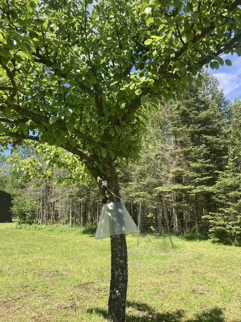 This year when we noticed, once again, that the robins built their nest in the pear tree, we decided to be proactive. We can’t be on security duty all day. Hence, the dog cone-of-shame on the pear tree. We hope that might deter the snakes. We’ll see.