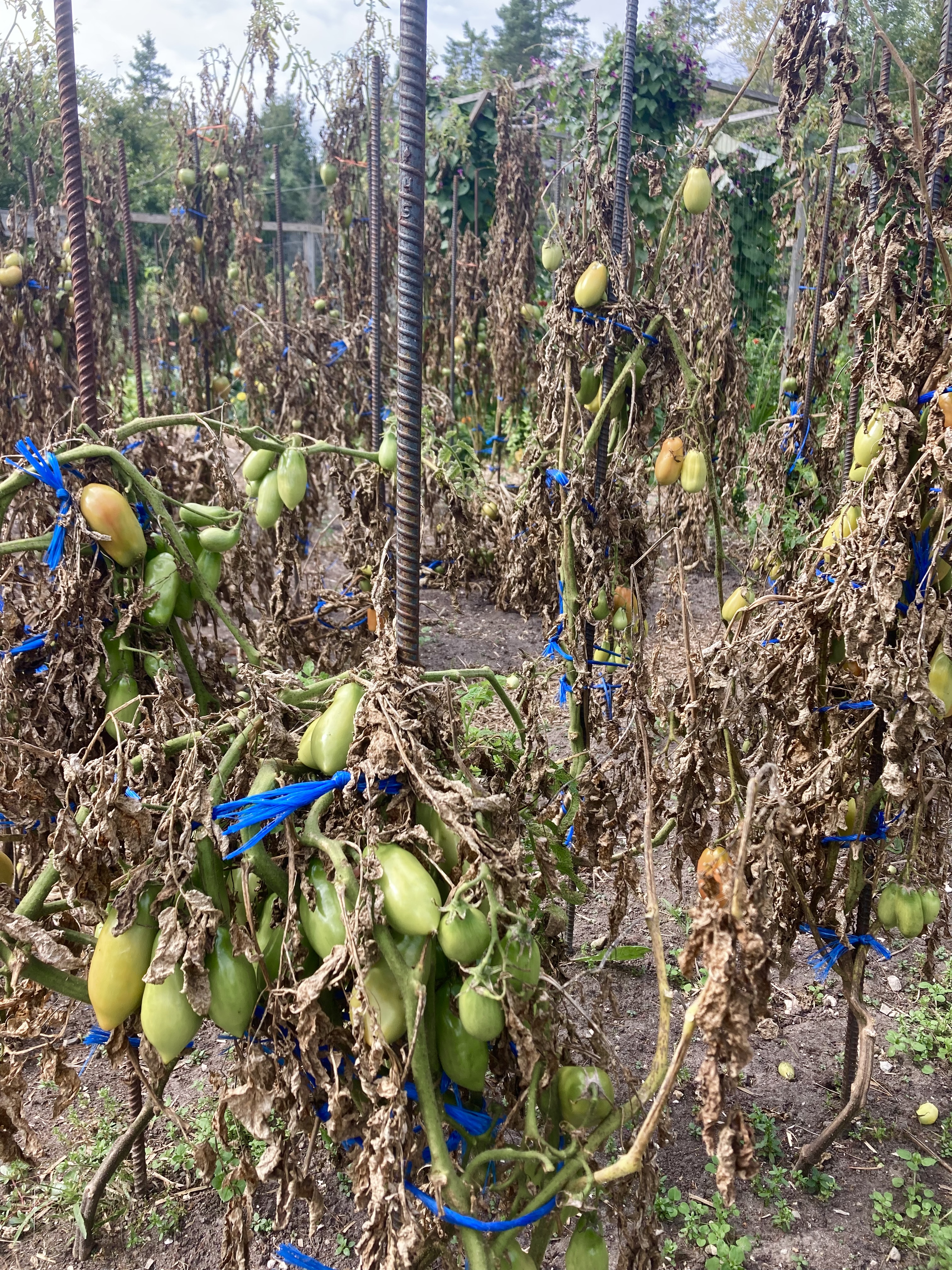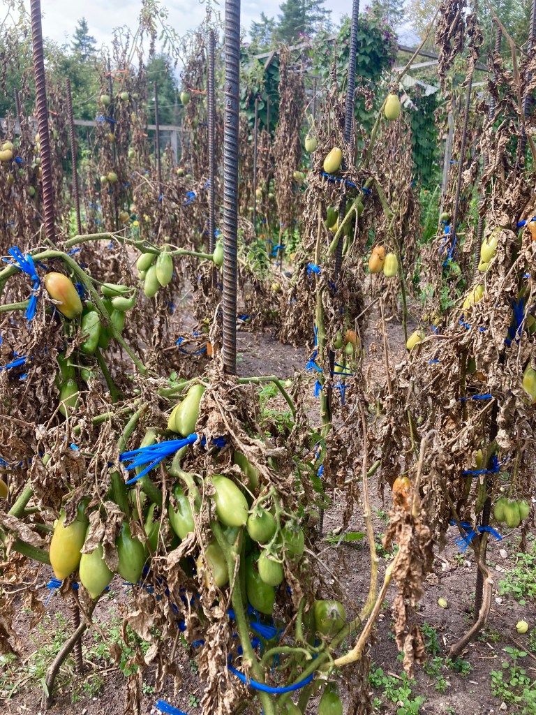 And yet, the majority of our garden beds have been emptied — you just can’t notice because they’ve been overrun by the squash. And the squash plants, one of the last things to come out of the garden, are starting to look pretty tired. Same with the tomato plants. All blighted out, sad looking, still supporting clumps of green tomatoes. They’ve given all they can.